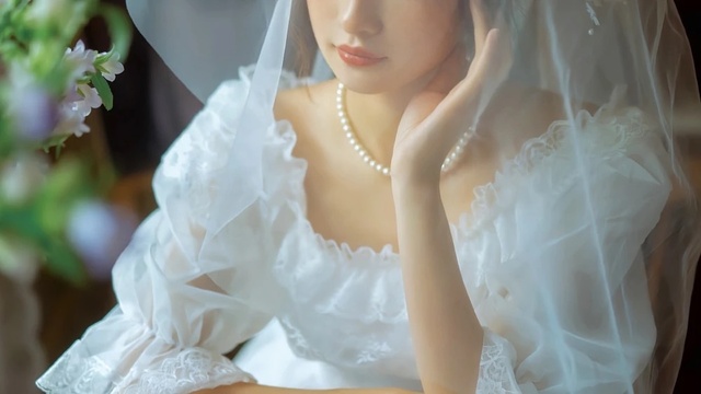 程渝野的头纱很大,尝试了一下后发现当真可以成为盖头,一时间程渝野穿的裙子更加有了几分婚纱的意味。
