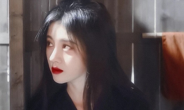 她今天化了妆穿了一身黑黑色的衣服,头发柔柔的垂在肩膀上看着特别的美特别勾人。