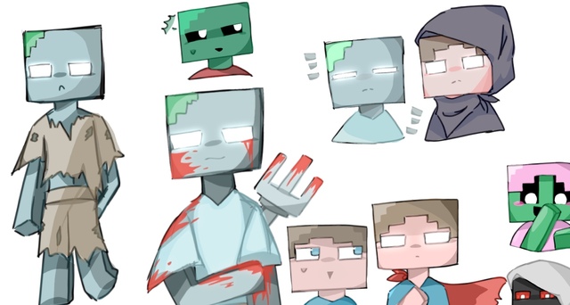 钻甲僵尸包围他们(拿着钻石剑指着)