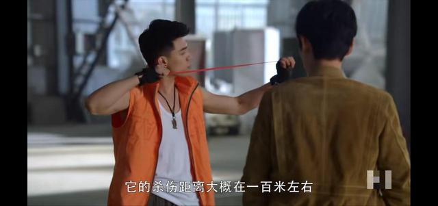 坎肩这根是橡胶混合鳄鱼筋做的,如果是射击单个弹珠的话,它的射速比子弹还要快