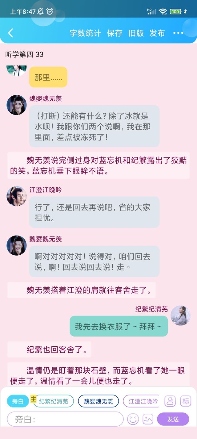 稍晚些时候,纪繁和魏无羡蓝忘机在松风水月相聚。