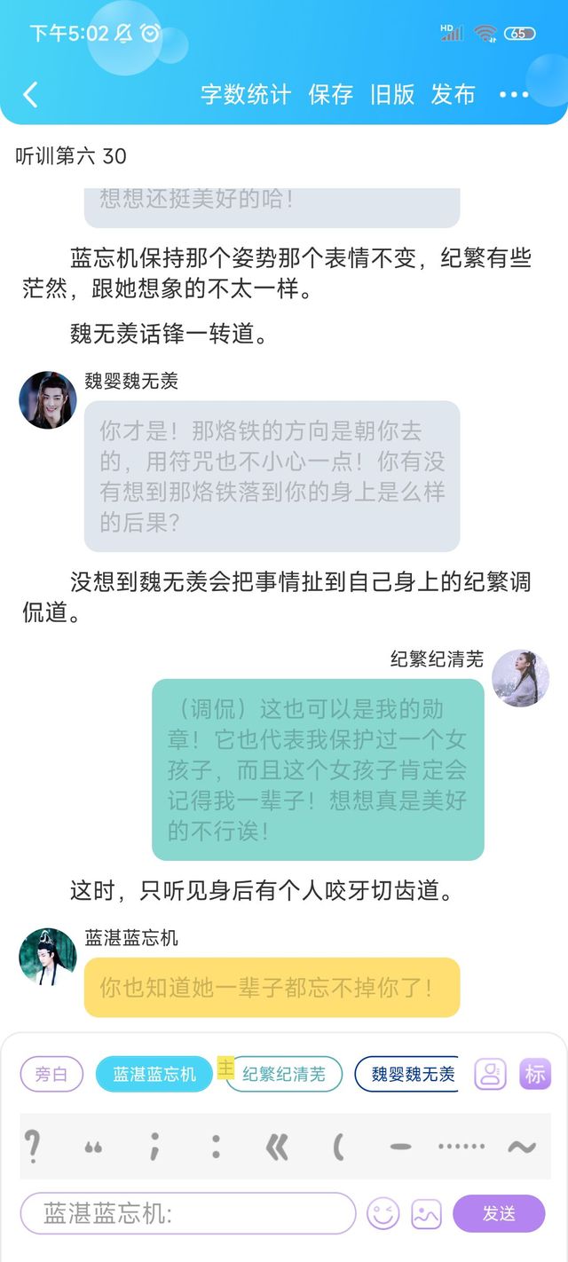 魏婴魏无羡(安慰)好了阿繁,蓝湛他受了伤,心情不好,你就别和他生气了。万一他伤口裂开了呢,是吧?蓝湛就是老家长上身,你别和他一般计较。