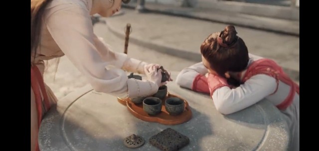 上古装作不小心一般走过去把准备好的‘水’递给红日。
