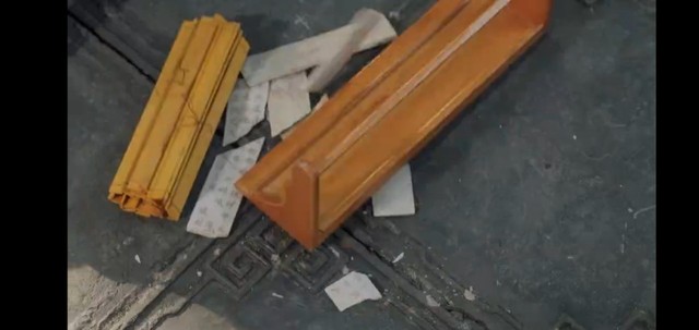 上古一扫把桌上的竹简及其它物品到地上去。