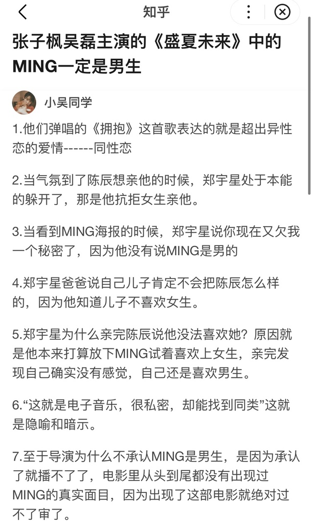 作者电影中没有办法阐明的ming,是男的。