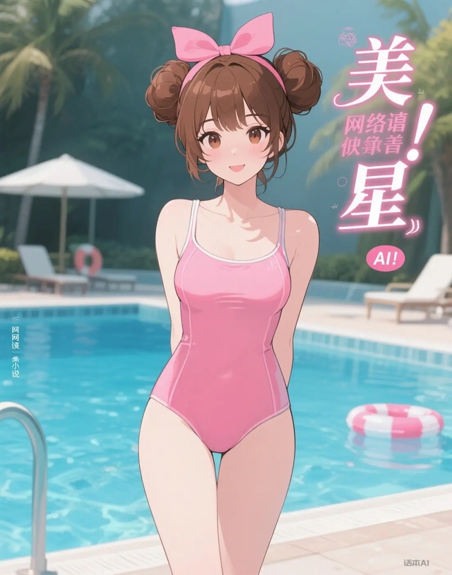 粉红色大蝴蝶结泳衣凸显出她优美的曲线。