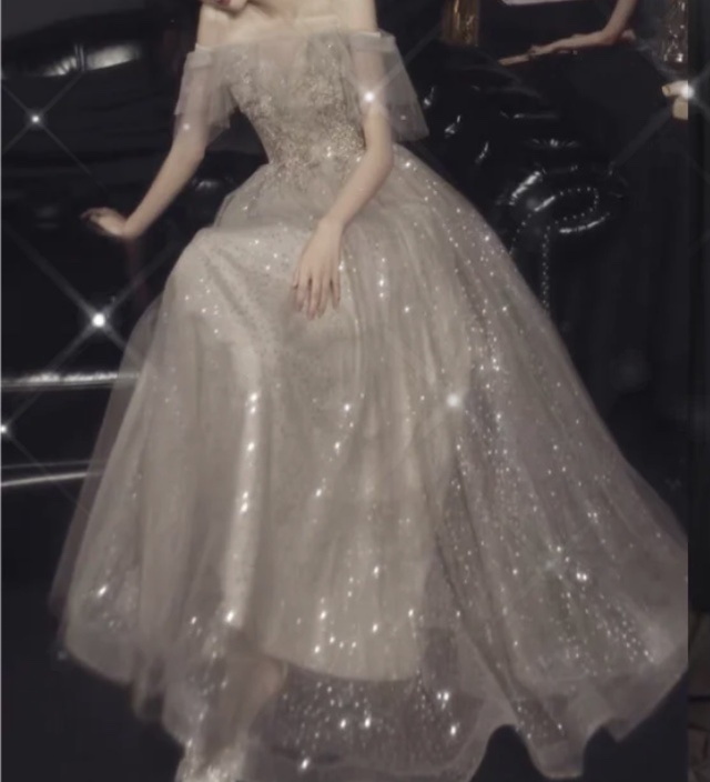 说完你便下了车,今晚你穿的是一套银色漏肩晚礼服,刚一下车的你便吸引了周围所有人的目光