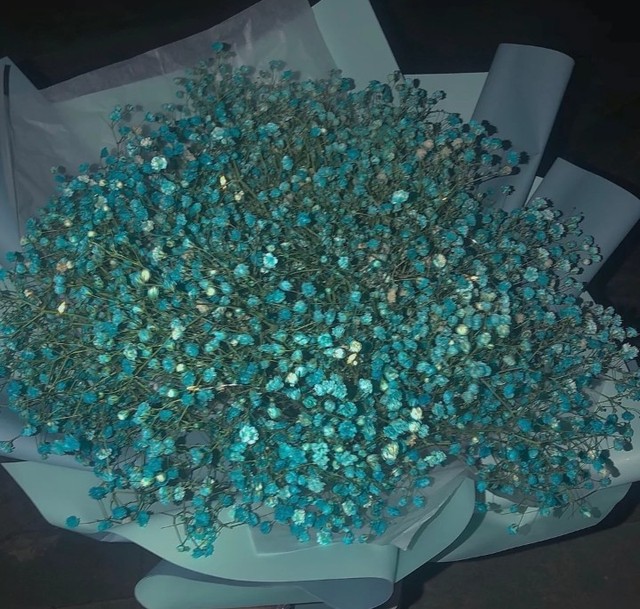 手里还拿着一束花