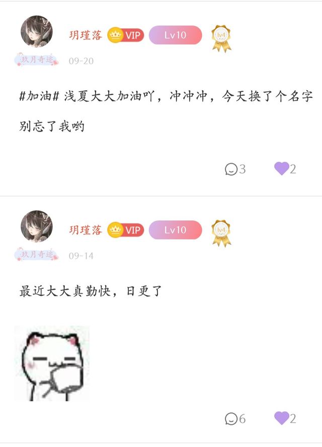 醉染浅夏还有这位小可爱每天都和大大打卡互动,从关注大大陪伴大大到现在完结,超级感动ing