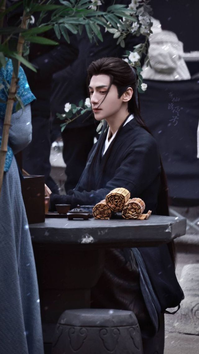 随后提着裙子再往前走了两步,便瞧见一位身穿黑衣看似比较俊俏的男子,坐在石桌旁看着书。