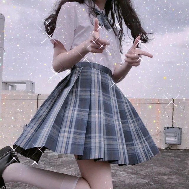 她左挑挑,右看看,最后选了一条JK制服