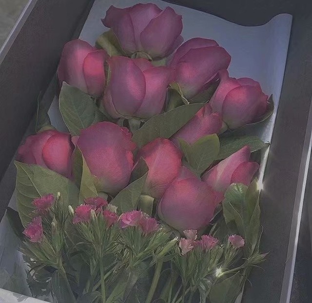 单膝下跪,手里的玫瑰花芳香四溢。