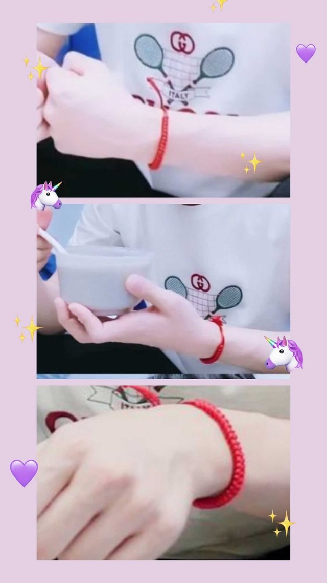 戴好了之后 ,王一博摸了摸那条红绳 ,看着那条红绳儿 ,系在肖战白皙的手腕上,满足的笑了笑 !肖战也看见那条红绳,笑了笑 !