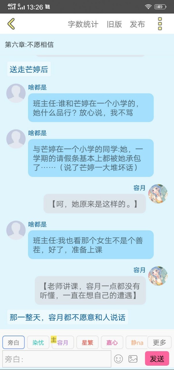 容月上了校车,坐到了座位上,不一会儿,上来了一个微胖的女孩 ,坐到了容月的旁边