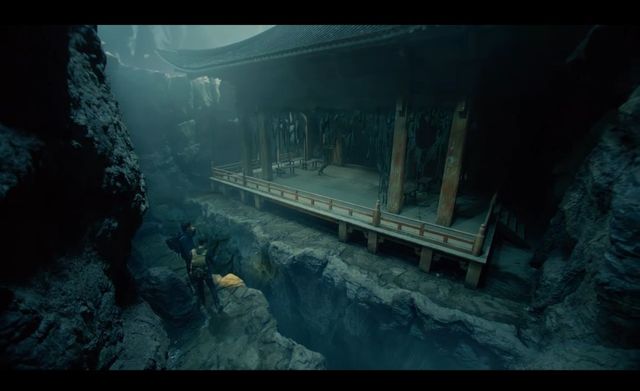 转过一个洞口,几人来到了一处有建筑物的地方,但是前面还有一个深不见底的深渊。