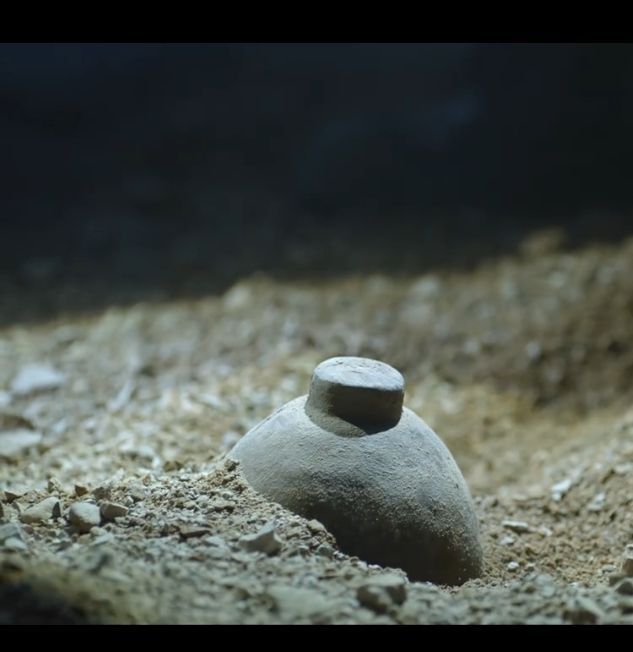 解雨臣刚刚探到一个露了一点点顶的铁疙瘩,用匕首小心将其周围的碎石子拨开,果然不出他所料!
