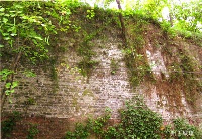 咸鱼校长从中山纪念碑后边,折向西行,可见一段约200多米的古城墙,逶迤伸展,隐没在丛林深处。它东起小北门(今小北花园),西迄大北门(今解放北路与盘福路交会处),共长约1100多米,断断续续,横跨越秀山。它是广州保存的惟一一段明代城墙,也是广州现存的最古老的城墙。明代初年,朱亮祖镇守广州,于洪武十三年(1380年)所建,迄今已有600多年历史。这段城墙是广州城垣的历史遗产,与镇海楼、五仙观后面的钟楼一起,被人们认为是明初广州三大地面古迹之一。