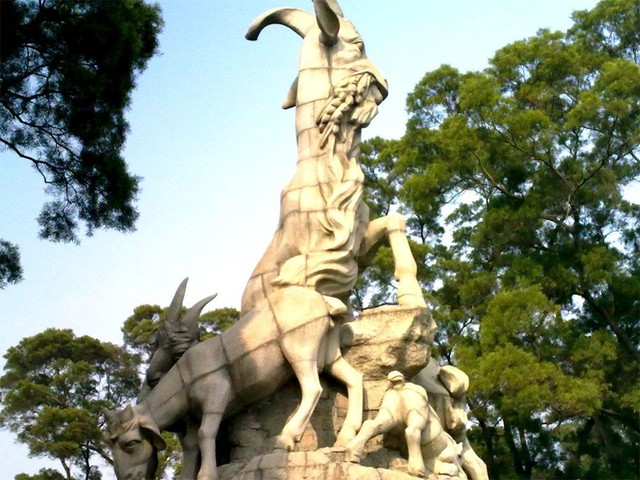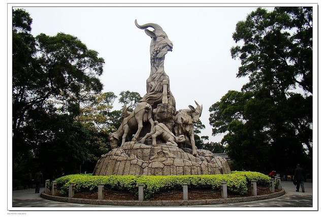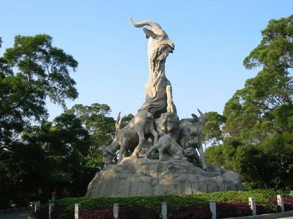 小铭五羊石像屹立在公园的木壳岗上,是广州市重点保护文物,它建于1959年,由尹积昌、陈本宗、孔丘传3位雕塑家创作。整座石像用130块花岗石雕刻而成,高10余米,体积为53立方米,这座雕塑,被视为羊城的标志。