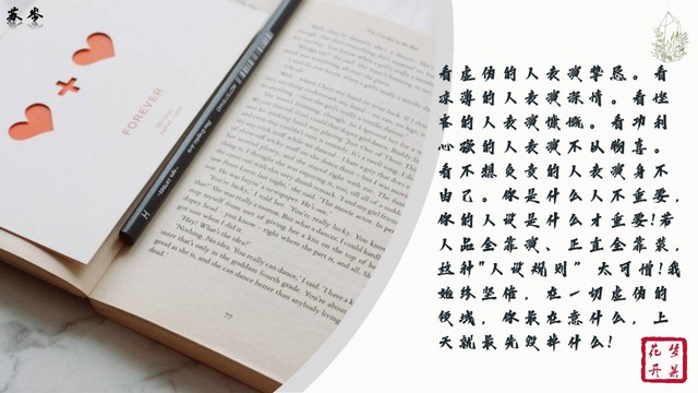 看虚伪的人表演挚恳。看凉薄的人表演深情。看悭吝的人表演慷慨。看功利心强的人表演不以物喜。看不想负责的人表演身不由己。你是什么人不重要,你的人设是什么才重要!若人品全靠演、正直全靠装,这种"人设规则”太可憎!我始终坚信,在一切虚伪的领域,你最在意什么,上天就最先毁掉什么!