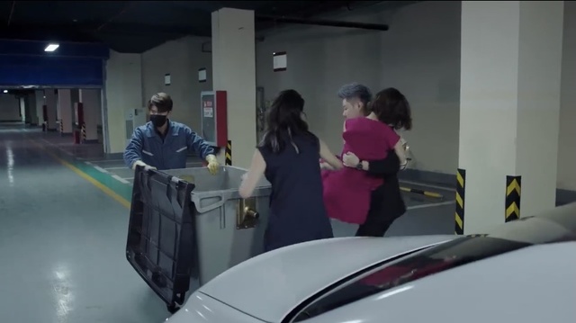 见穆青推着垃圾桶走了过来,你立马下了车前去帮忙,打开了盖子
