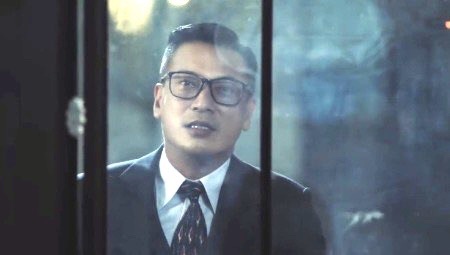 眼镜盯着保镖身后的墙,正思考着。