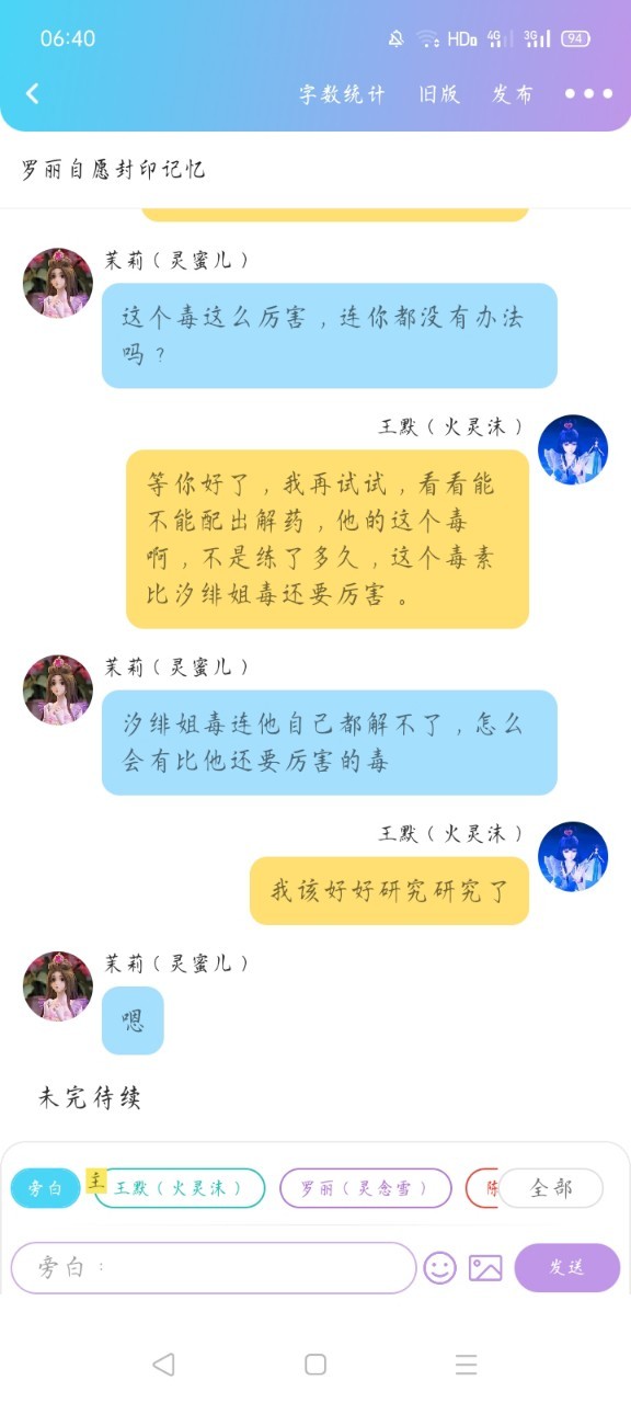 王默(火灵沫)罗丽,我跟思思说话呢