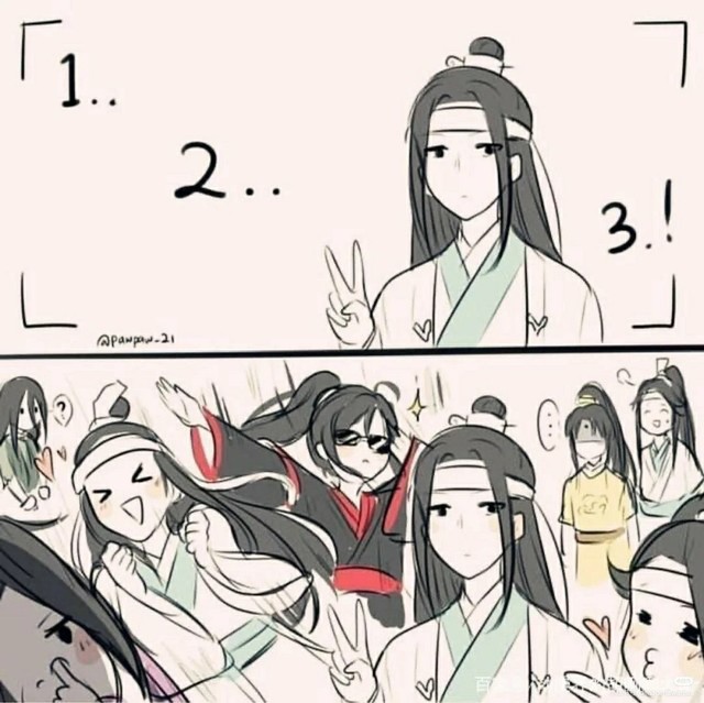 一些女弟子看着照片不近到:“啊~好可爱,夷陵老祖这么可爱吗?”魏无羡凑到蓝忘机面前问道:“蓝湛,你怎么了?”蓝忘机:“……”(蓝大有情翻译“魏婴好可爱啊,温宁这个人为什么站在魏婴旁边”)蓝曦臣扭头不去看蓝忘机,心道“弟弟能换吗?”