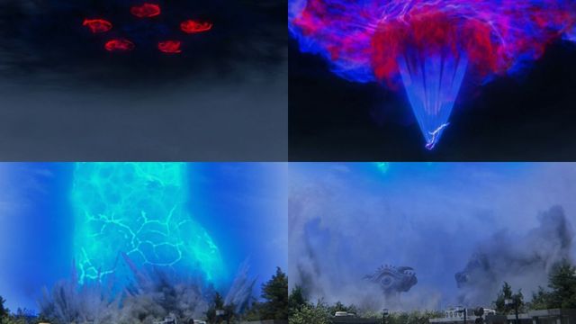 但,看着眼前在城市里肆虐的怪兽,朝仓陆找了个隐蔽的角落变身,正好遇到了也同样前来变身的凑活海与凑勇海兄弟俩,一番尴尬掩饰之后,各自重新找了个角落变身。