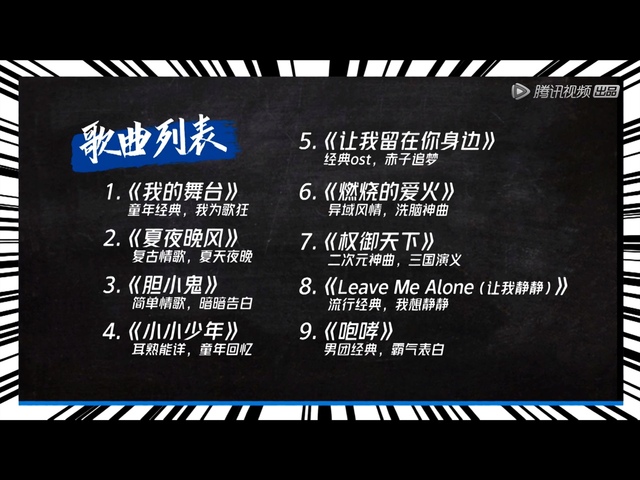 梁龙接下来咱们来公布一下九首歌曲