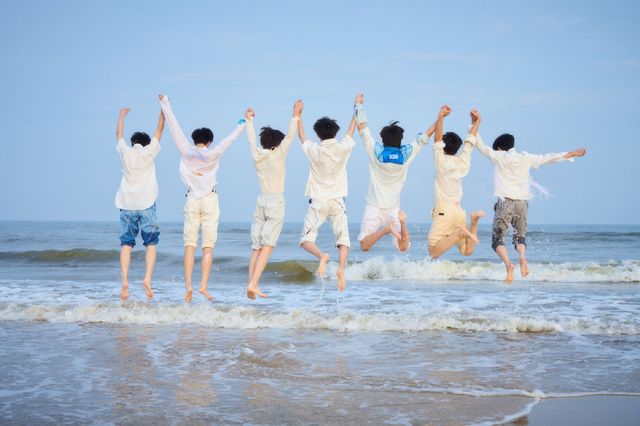 每个人都挽起了裤腿,在一点点的试探着波涛汹涌的海浪