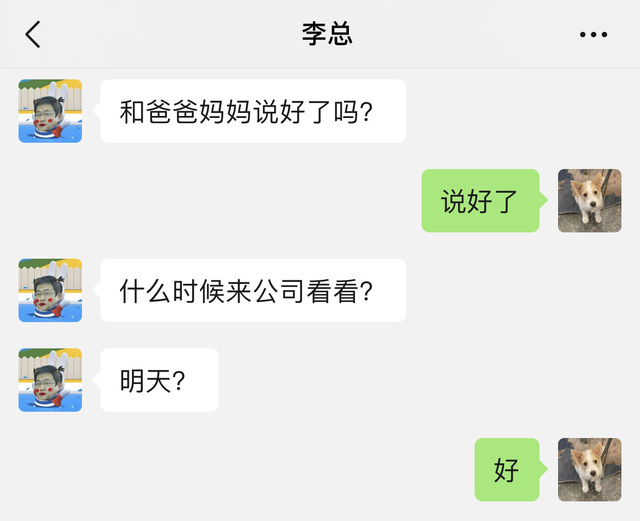 李飞你爸爸妈妈说明天来面谈 今天你就在公司随便转转吧