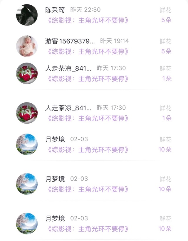 作者❤️感谢「月梦境」的310朵花花,图太长就不全放上来了。