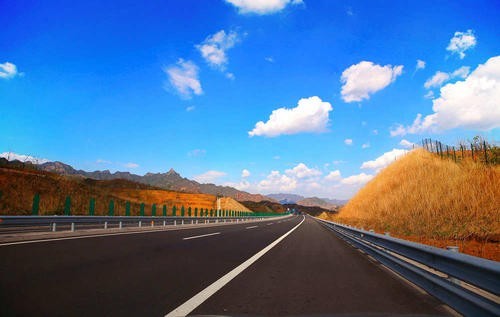 太阳的余晖散在笔直的公路上,就像在马路上铺上了五彩的丝线,红色的轿车如梭般穿织着。
