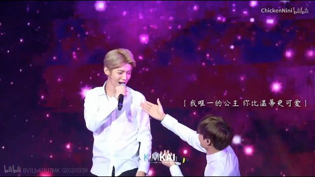 同样的时间,同样的片段,同样歌词,金钟仁做出了同样的动作,众目睽睽之下,当着兄弟团,工作人员,许凯的面,单膝下跪,满目柔情。