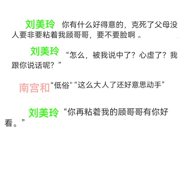 南宫和当时刘美玲就跟着我然后冲到我面前让我离她的顾哥哥远一点,然后她看见我身后的蛇就跑了。我跟蛇纠缠的时候,我就掉下山洞了。大概过了几分钟后她就过来把洞口堵上了。