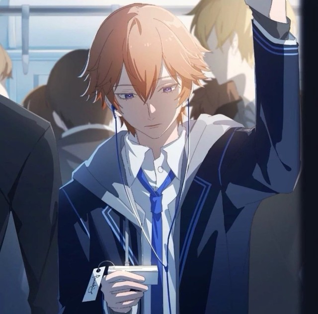 他带着耳机并没有过多在意只是继续低头看着手里的卡片