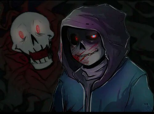 chara (背锅的人类[在原作中以死,在这个au她操纵的frisk,明明是玩家杀的,但却被认为是她)chara 屠杀了三百多次,在最后一次中sans 回想起了每个屠杀线的痛苦,然后他就疯掉了,他也开始屠杀