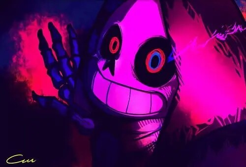 在这个au 中,sans 疯掉了,他为了变得更强,开始和chara 抢EXP 和LOVE
