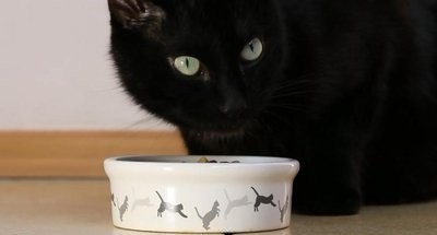 小猫走过去嗅了嗅,便狼吞虎咽地吃了起来。