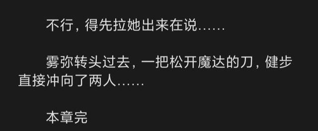 魔达刚才好和岚淫在互怼,只看见一个黑影冲了过去,他才看清楚是雾弥……