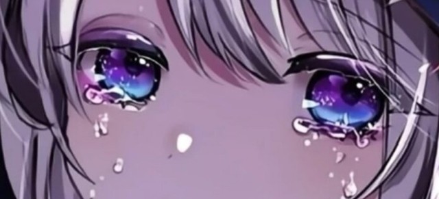 一名少女正漂浮在星空与月亮的之间,双眼旁带着泪痕与星光缓慢的睁开着