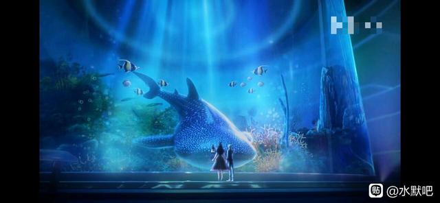 王默。和水王子。来到大鲸鱼面前,王默看的鱼。水王子就看着王默。他们就非常甜蜜。看着大鲸鱼。