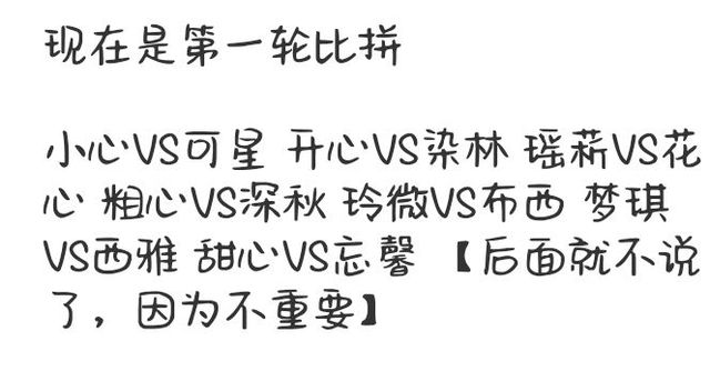 甜心:“染林和小心,你们两个一组,听说这一次是淘汰赛......”