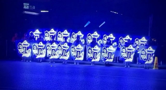 你盯着手机里跟左航的合照,嘴角上扬,不知不觉走到了应援场。