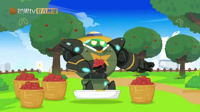 寒天在旁边挑苹果,懒羊羊而负责吃