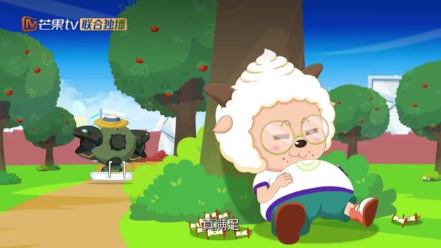 懒羊羊蹲下摘苹果,却意外躲过了寒天的攻击