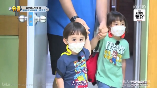 因为平时也会看《超人回来了》,所以在林洛施看到门口害羞的威廉和本特利时,就激动地冲了过去,一脸姨母笑
