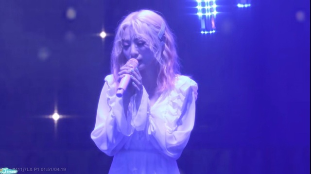 照常表演完《D》的舞台,林洛施换了身衣服准备《致我》,撤去上一场的棉质家具,舞台此刻就像夜空,忽的亮起一束光,是林洛施!