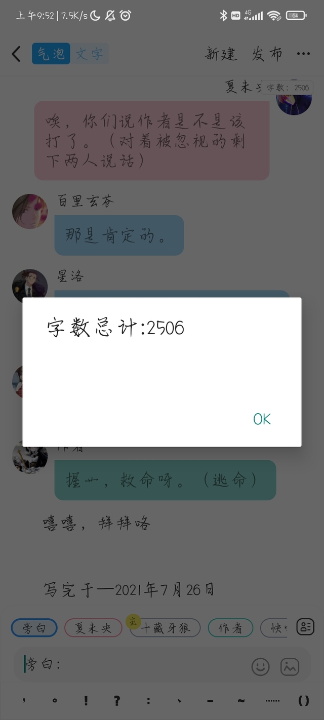 作者好像也是,那就开更吧。旁白,画线。