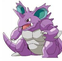“尼多王,地面加毒属性,头顶上巨大而尖锐的角是它有力的攻击武器”